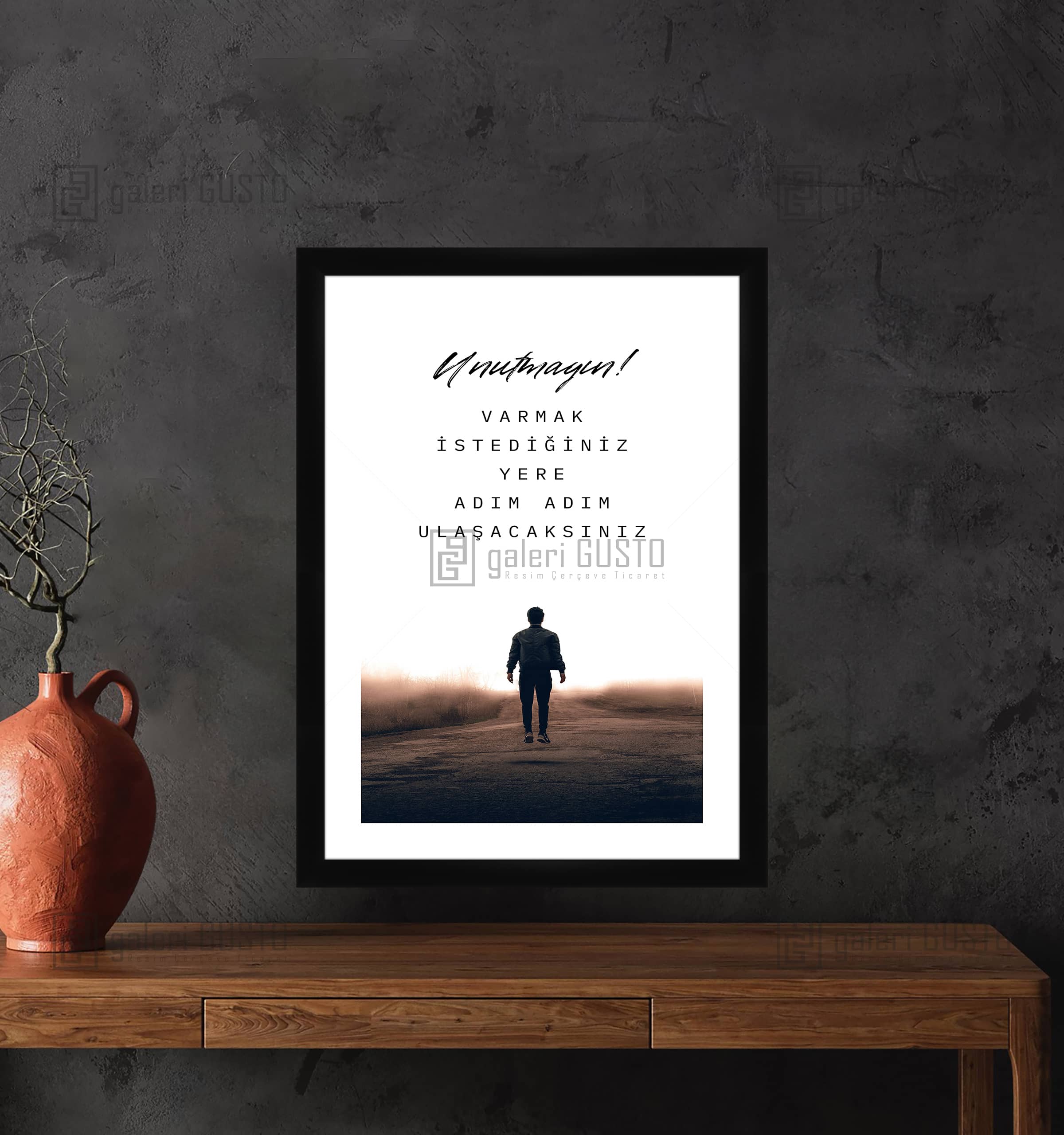 '50 gr/m² Mat Kuşe Kağıda Baskı Yapılmıştır. 2mm Normal Cam 2cm Siyah Lamine Çerçeve