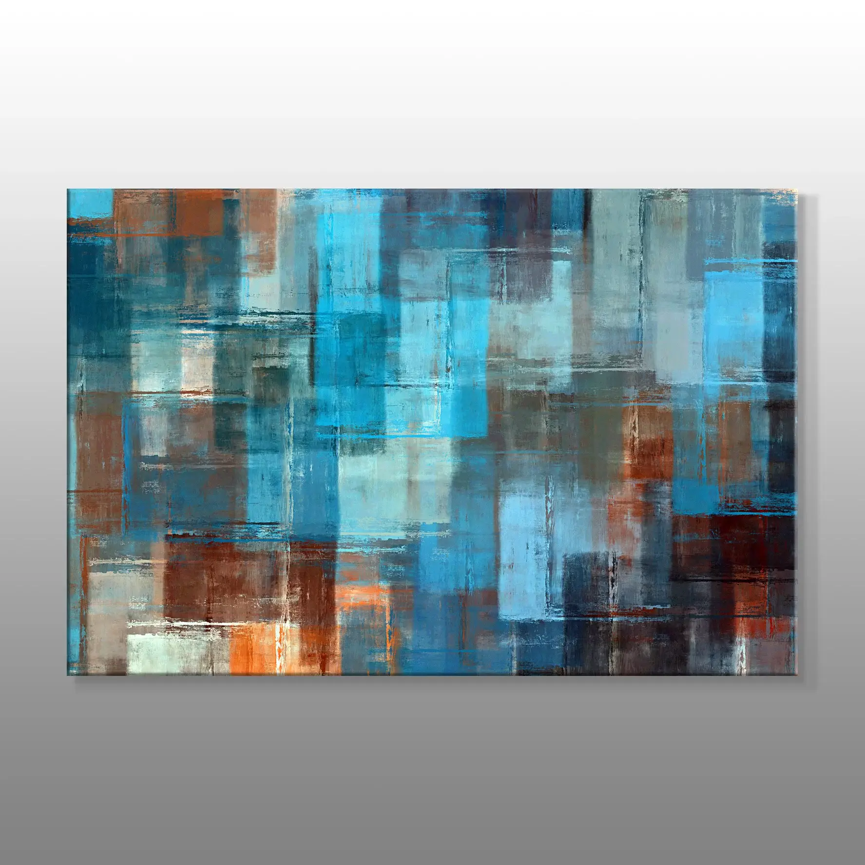 Üst Üste Mavi Tonlu Fırça İzleri Soyut Kanvas Baskı Tablo