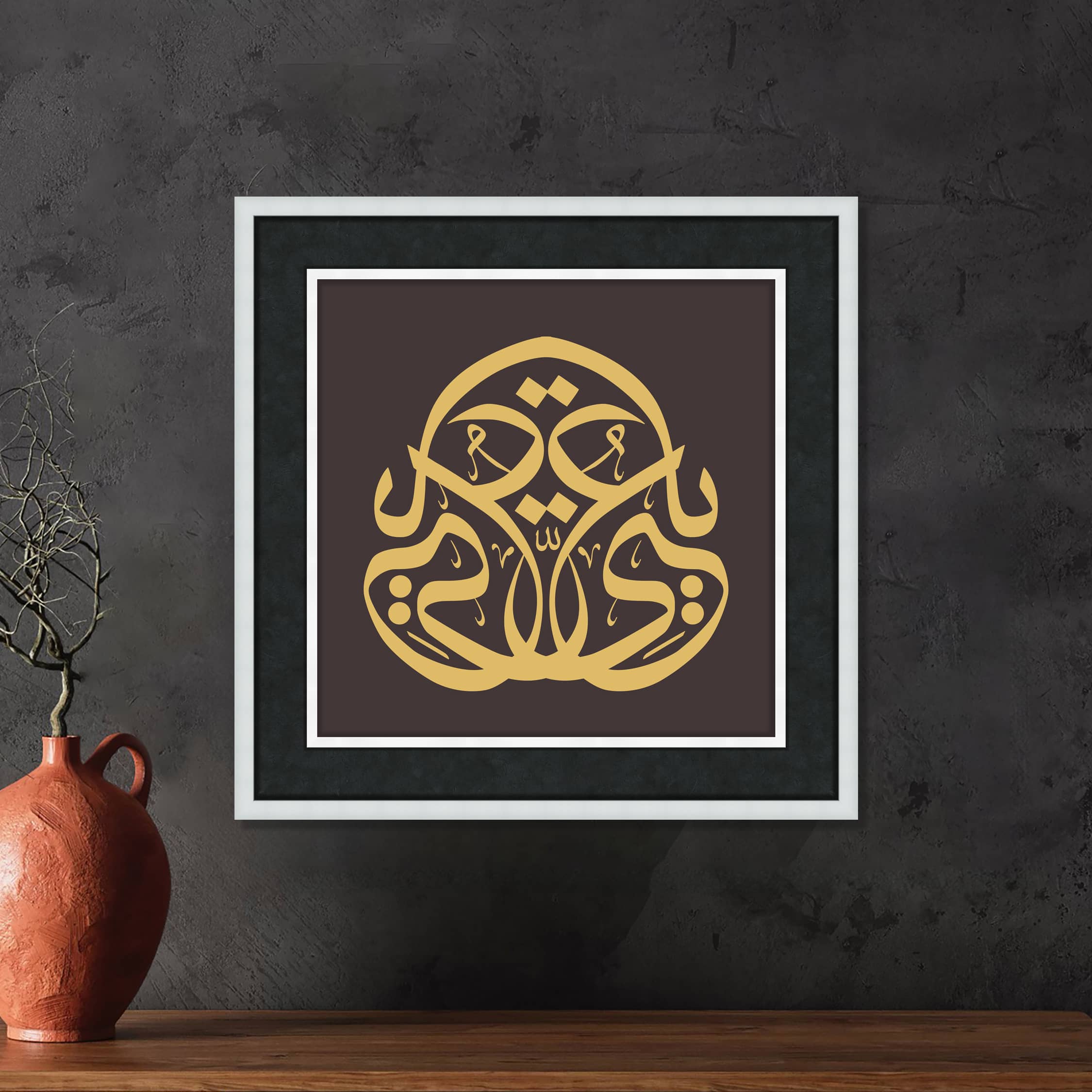 "Ya Ganiyy" (يَا غَنِيُّ) ifadesi, Allah’ın "El-Ganiyy" isminden türetilmiş bir zikirdir ve İslam'da Allah'ın güzel isimlerinden (Esmaü'l-Hüsna) biridir. "El-Ganiyy" ismi, Allah'ın hiçbir şeye muhtaç olmadığını, her türlü ihtiyaçtan münezzeh olduğunu ve her şeyin O'na muhtaç olduğunu ifade eder. Anlamı: "El-Ganiyy" (الْغَنِيُّ): Arapça bir kelime olup "hiçbir şeye muhtaç olmayan, zengin, her türlü ihtiyaçtan münezzeh" anlamına gelir. Allah’ın bu ismi, O’nun mutlak zenginliğini ve yeterliliğini ifade eder. "Ya Ganiyy" (يَا غَنِيُّ): "Ey Ganiyy olan Allah!" anlamına gelir ve dua ederken veya zikir yaparken Allah’a bu isimle hitap etmeyi ifade eder. Anlam Derinliği: Allah’ın Zenginliği ve İhtiyaçsızlığı: "El-Ganiyy" ismi, Allah’ın hiçbir şeye muhtaç olmadığını, O’nun her türlü zenginliğe ve ihtiyaca sahip olduğunu anlatır. Allah, mutlak varlık sahibidir ve O'nun dışında her şey O'na muhtaçtır. O'nun zenginliği, insanın anladığı anlamda bir zenginlik değil, her türlü ihtiyaçtan münezzeh olmayı ifade eden sınırsız bir zenginliktir. Kulların Allah’a Olan İhtiyacı: Allah’ın "El-Ganiyy" ismi, insanların ve tüm varlıkların Allah’a olan ihtiyaçlarını da hatırlatır. İnsanlar, varlıkları, hayatları ve ihtiyaçları açısından Allah’a muhtaçtırlar. "Ya Ganiyy" ifadesi, kulların O'na yönelerek, O'ndan ihtiyaçlarını talep etmeleri gerektiğini ifade eder. Dua ve Zikirlerde Kullanımı: "Ya Ganiyy" ifadesi, dua ve zikirlerde Allah’ın zenginliğini ve ihtiyaçsızlığını anmak ve O'ndan rızık, bereket, bolluk ve ihtiyaçların giderilmesini talep etmek için kullanılır. Müslümanlar, dualarında bu ismi kullanarak, ihtiyaçlarını Allah’a arz eder ve O'ndan yardım dilerler. Kur'an-ı Kerim'de Geçişi: El-Ganiyy İsmi: Kur'an-ı Kerim'de birçok ayette Allah’ın "Ganiyy" sıfatı geçer. Örneğin: Yunus Suresi 68. Ayet: "De ki: Allah her şeyden müstağnidir (hiçbir şeye muhtaç değildir)." Lokman Suresi 26. Ayet: "Göklerde ve yerde ne varsa hepsi Allah’ındır. Şüphesiz Allah, Ganiyy (zengin ve hiçbir şeye muhtaç olmayan) ve Hamîd’dir (övgüye layık olandır)." Bu ve benzeri ayetler, Allah’ın hiçbir şeye muhtaç olmadığını ve her şeyin Allah’a muhtaç olduğunu ifade eder. İnsani ve Ahlaki Öğütler: Tevekkül ve İbadet: Allah’ın "El-Ganiyy" ismi, Müslümanlara tevekkül ve ibadetlerinde samimi olmalarını hatırlatır. İnsanlar, her şeyin sahibi ve ihtiyaçsız olan Allah’a güvenmeli ve O’na yönelmelidir. Mütevazilik ve Kanaat: Bu isim, aynı zamanda insanlara mütevazı olmayı ve Allah’ın verdiği nimetlere kanaat etmeyi öğretir. Kişi, Allah’ın zenginliğine inanarak O’nun verdiğine şükretmeli ve ihtiyaçlarını O'ndan istemelidir. Yardımlaşma ve Paylaşma: Allah’ın "El-Ganiyy" ismi, zenginlik ve ihtiyaçsızlık kavramını düşünerek, insanlar arasında yardımlaşmayı ve paylaşmayı da teşvik eder. Kişi, sahip olduğu nimetlerin Allah’tan bir lütuf olduğunu bilerek, başkalarına yardım etmeye çalışmalıdır. Sonuç: "Ya Ganiyy", Allah’ın her türlü ihtiyaçtan münezzeh olduğunu ve her şeyin O'na muhtaç olduğunu ifade eden önemli bir isimdir. Müslümanlar, Allah’ın bu ismini dua ve zikirlerinde kullanarak O'na olan ihtiyaçlarını dile getirir ve O'ndan rızık, bolluk ve bereket talep ederler. Bu isim, Allah’a güveni, O'na yönelme bilincini ve kulların Allah’ın zenginliğine ve ihtiyaçsızlığına olan inancını pekiştirir. Çerçeve , Lamine Çerçeveden üretilmiştir. Çift katmanlı çerçeve kırık beyaz renginde, derinlikli çeçreve kullanılmıştır, Baskı, Hahnemühle, Stüdio Enhenced 190 gr /m² Kağıt Kullanılmıştır. Paspartu; 6 cm Siyah İthal 17 micron kağıt kullanılmıştır. Cam, 2 mm Normal Cam Kullanılmıştır.