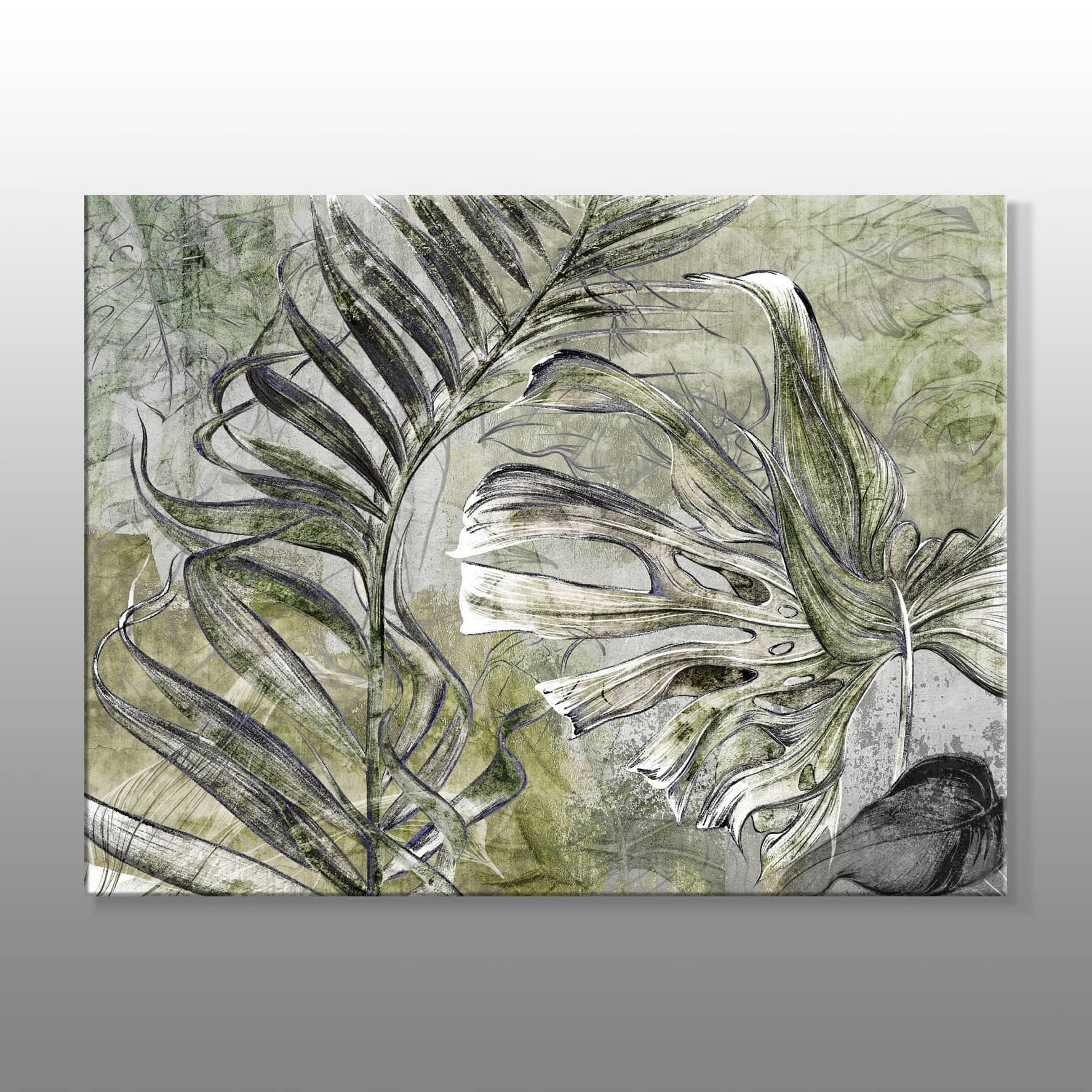 Yeşil Modern Yaprak Sanatı Kanvas Baskı Tablo