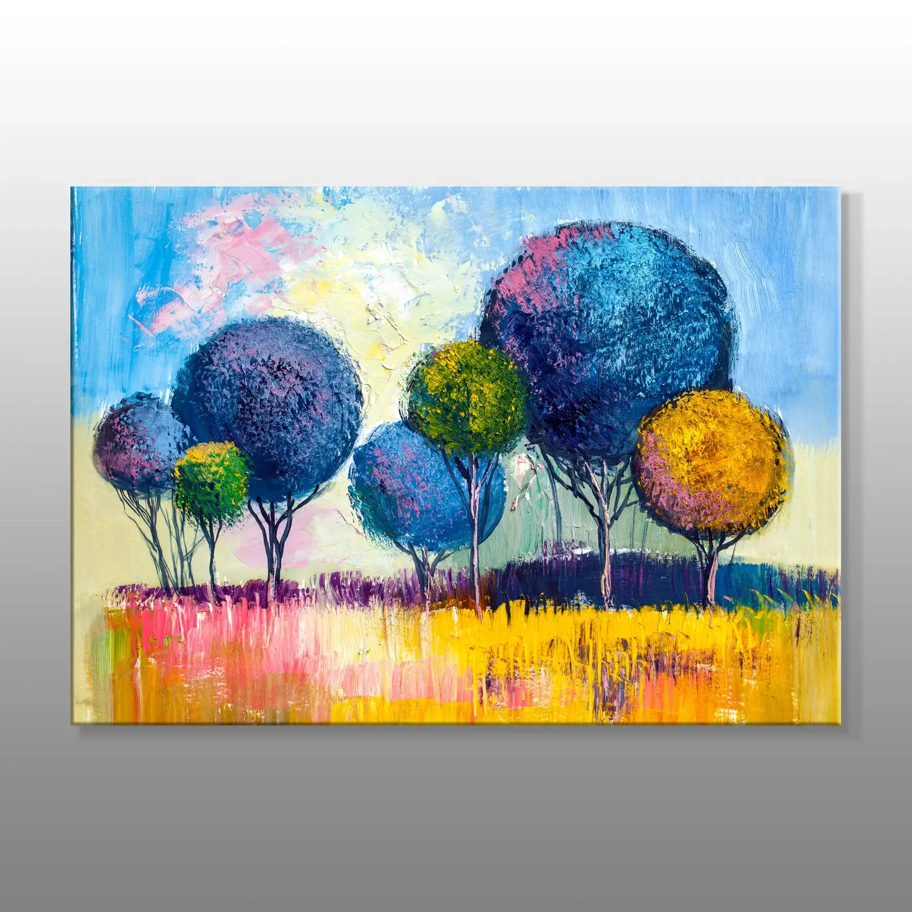 Yuvarlak Renkli Ağaçlar Soyut Kanvas Baskı Tablo